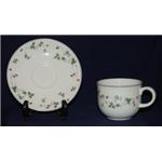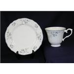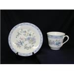 Off white china with mauve and blue flowers. Green trim. Expressions Series