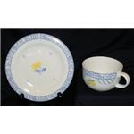 White china with light blue border pattern and yellow flowers. Expressions Series.
