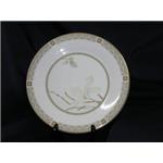 Off white china with a garland of gold leaves on the border. Gold trim.