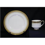 ATHENA White bone china with a stylized gold border and black touches in the trim. Gold trim. |