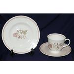 TALISMAN White bone china with a maroon-brown flower motif. |