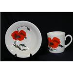 |  CORN POPPY White bone china with flame red poppy and dark grey foliage. |