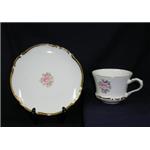 GLORIA White scalloped china with heavy gold trims and a rose on gold foliage |