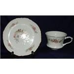 |  CHINA TREE White china with pink, purple and yellow flowers on tree. Gold trim. |